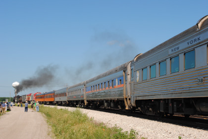 The Train ConsistIowa Northern F40PH 461 and 678, NSRX coach 202 "Wenonah" PPCX 800261, NSRX coach 203 " Nokomis" PPCX 800898, NSRX coach 7616 "Lake Pepin" PPCX 800799, NRHX 142 "Franklin Inn" PPCX 800957, "Braddock Inn" PPCX 800854, New York Central tavern lounge 38 PPCX 800655, High Iron dome 60 "Scenic View" (former Santa Fe 551), NSRX "Super Dome" 53 PPCX 800862 and NRSX Skytop Lounge Observation 186 "Cedar Rapids" PPCX 800040.