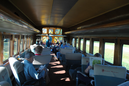 My dome car, Iowa Pacific 511 "Scenic View", ex. Holland America Westours "Nenana" PPCX 800124, exx. Holland America Westours 523 1986, exxx. Great Western Tours 523 "Redwood Coast", exxxx. Auto Train Corporation 523, nee Santa Fe full come 511 built by Budd Company in 1954.
