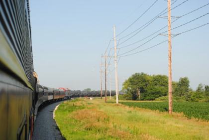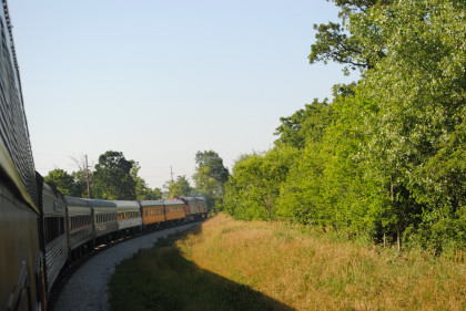The train curved through East Amana.