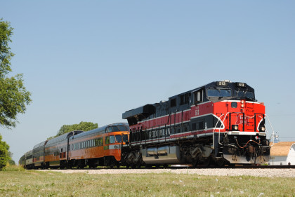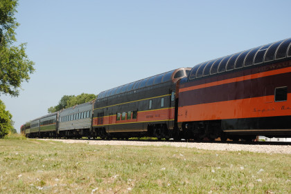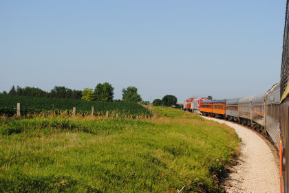 The Train ConsistIowa Northern F40PH 461 and 678, NSRX coach 202 "Wenonah" PPCX 800261, NSRX coach 203 " Nokomis" PPCX 800898, NSRX coach 7616 "Lake Pepin" PPCX 800799, NRHX 142 "Franklin Inn" PPCX 800957, "Braddock Inn" PPCX 800854, New York Central tavern lounge 38 PPCX 800655, High Iron dome 60 "Scenic View" (former Santa Fe 551), NSRX "Super Dome" 53 PPCX 800862 and NRSX Skytop Lounge Observation 186 "Cedar Rapids PPCX 800040.