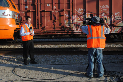 A local television crew was doing a story about our train, convention and trips.