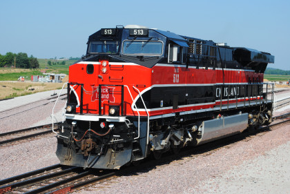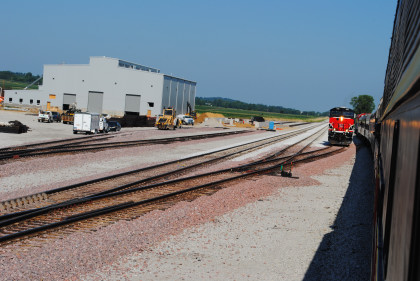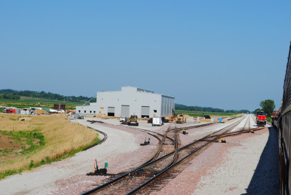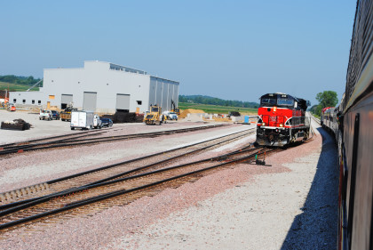 The new Iowa Interstate shops came into view where Iowa Interstate ES44AC 513 was waiting for us to be put on the east end of our train to Rock Island.