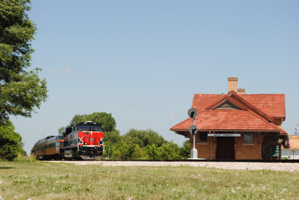 The Rock Island station in West Liberty built in 1897. We unloaded with instructions given over the PA system by the car attendant. Unfortunately locals and a few of our passengers did not listen and failed to stay in the photo lines. The eastbound shots were fantastic and the westbound shots very poor. Had people followed directions, the westbound photographs would have worked.