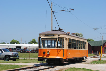 Midwest Electric Railway Museum interurban car 381, ex. City of Waterloo 381 1958-1972, exx. Waterloo, Cedar Falls and Northern 381 1945-1958, nee Knoxville Power and Light 379 1930-1945, built by Perley Thomas in 1930. It carries 42 passengers and is still considered a modern car by today's standards. This car was the last streetcar to operate in Iowa, August 1, 1958 and was donated to Old Threshers in 1971 by the City of Waterloo.