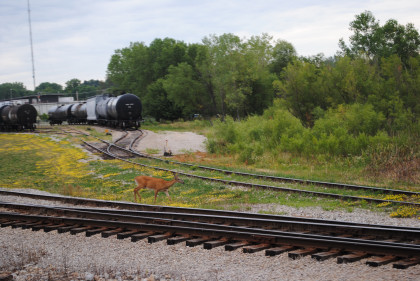 The wye at Engleside takes trains east to the Prairie Creek Power Plant, a coal-fired power station owned and operated by Alliant Energy.