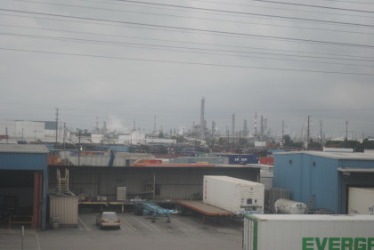 An oil refinery behind the Intermodal Container Transfer Facility.