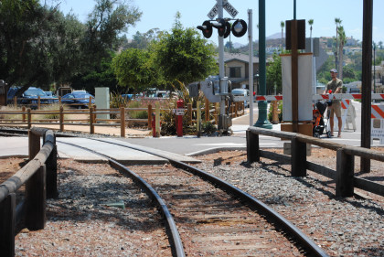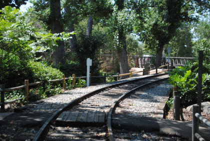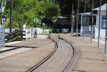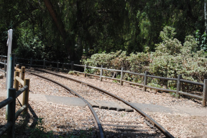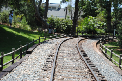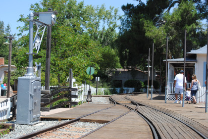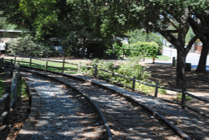 We drove north from Alpine to Poway and found a place to park then went to the station but found no steam engine but the speeder was operating and pulling two cars. We waited for our turn to ride this 42 inch railroad.