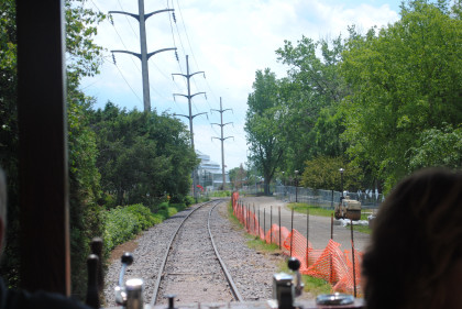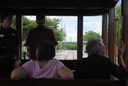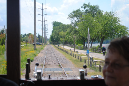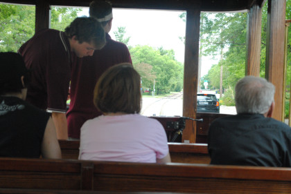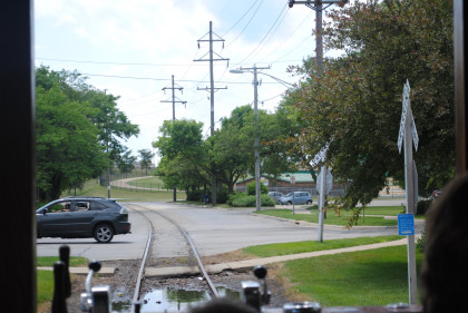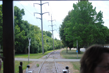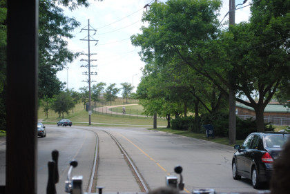 The gate behind us must always be closed so that trolley operations can take place. It runs on propane for fuel thus no overhead wires are needed to operate. We departed the boarding area.