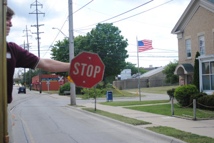 Our conductor stopped the traffic at the end of our street-running along Madison Street after which we returned to the boarding area.