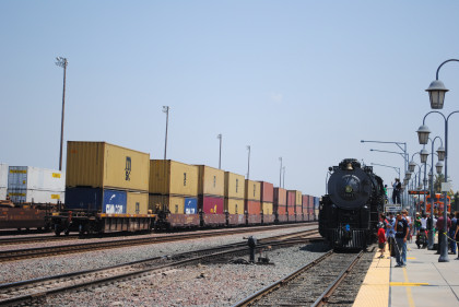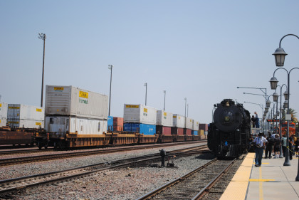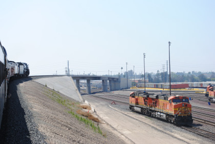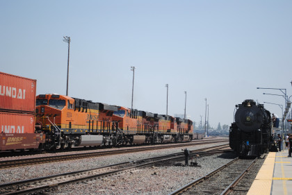 Santa Fe 3751 went up and over the San Bernardino Flyover.