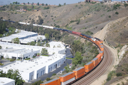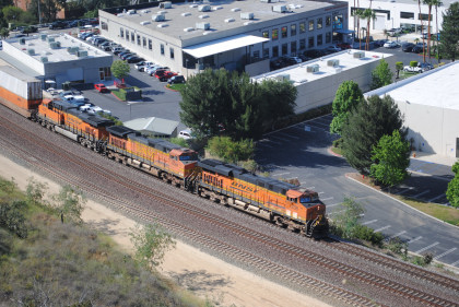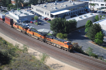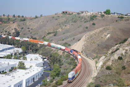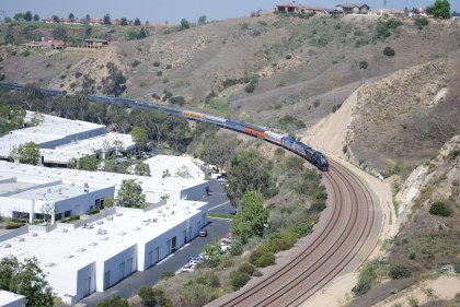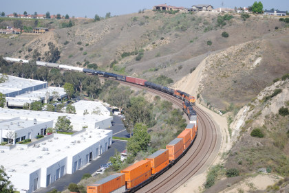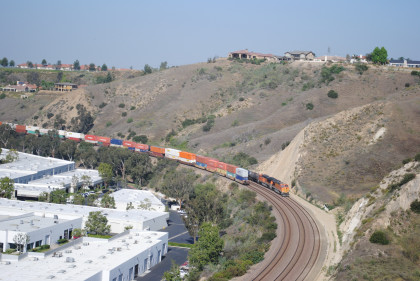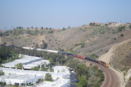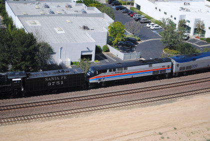Metrolink 800 for San Bernardino came by us. That westbound BNSF freight in the holding track then left and a few minutes later, we spotted Santa Fe 3751 heading towards us.