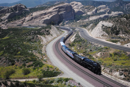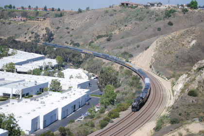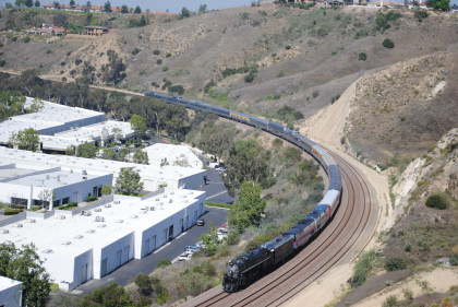 Santa Fe 3751 and train took the Horseshoe Bend in Santa Ana Canyon.