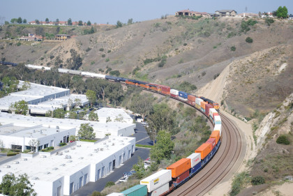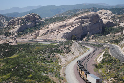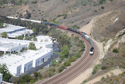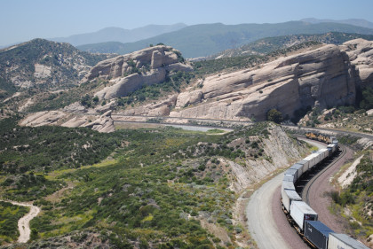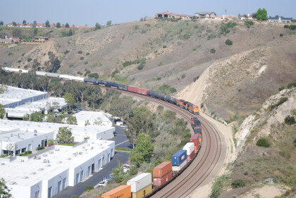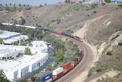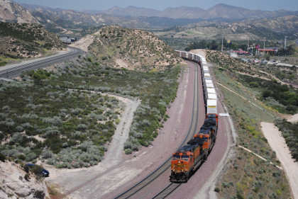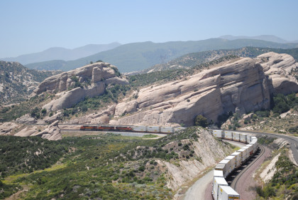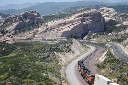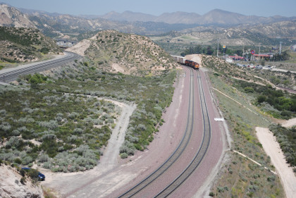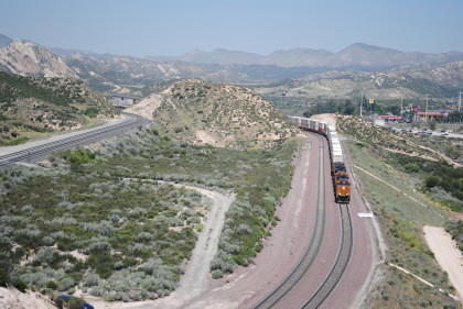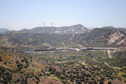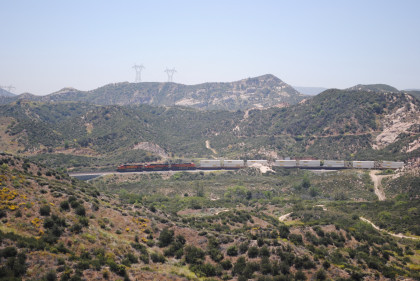 Santa Fe 3751 and train left the Horseshoe Bend in Santa Ana Canyon. We hiked back down to the van then drove straight to Cajon Pass and after stopping at McDonald's, headed to our next photo location at the east end of Sullivan's Curve.