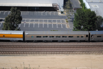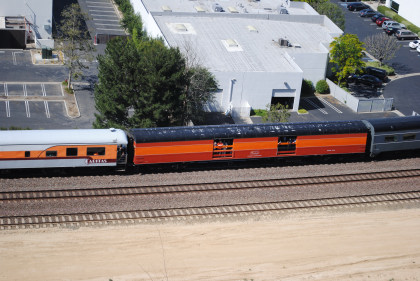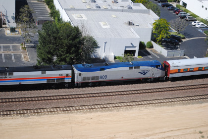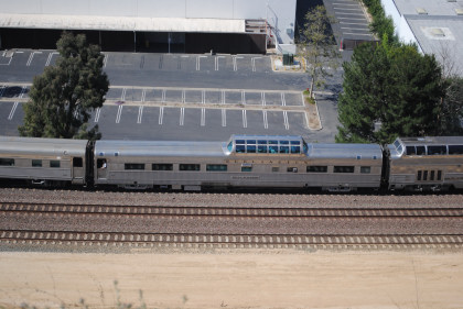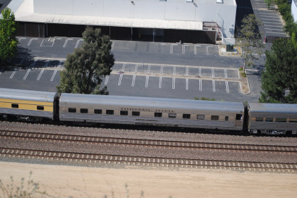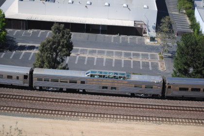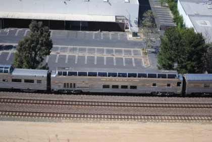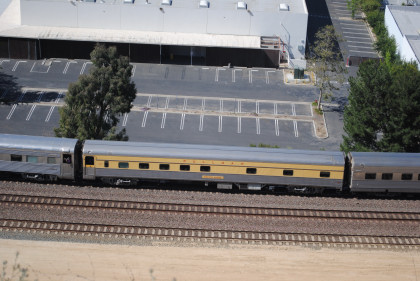 The ChaseFor the chase of Santa Fe 3751 on its way to Arizona to celebrate that state's centennial, I chose four good photo locations and by using the freeway, we would have no problems reaching all of them. The morning of the trip, Chris Parker met me at my house at 7:15 AM and I drove us to the Santa Ana station and parked in the parking structure. We crossed the bridge to Track 1, only to find the Metrolink ticket machine out of service. I went back to the station side and bought two Orange County Day Passes for $7 each then rejoined Chris. We waited for Metrolink 607 to arrive to take us to Fullerton.