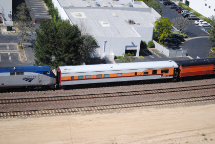 California Rail Tours dome-coach 503 "Plaza Santa Fe", ex. Amtrak 9353, nee Santa Fe 503 built by Pullman-Standard in 1950.