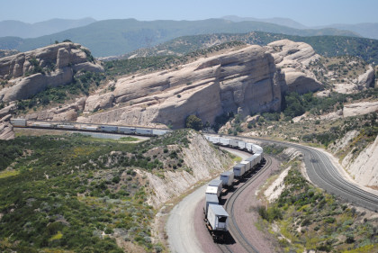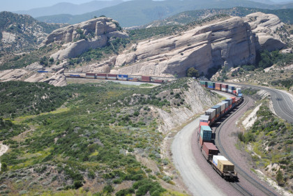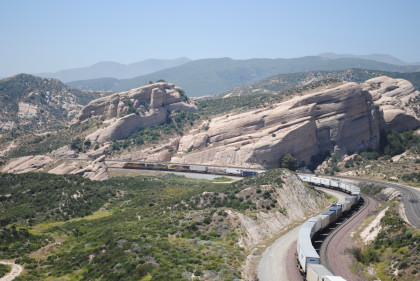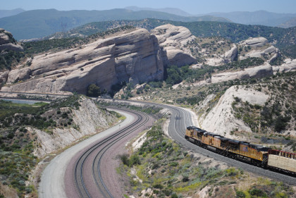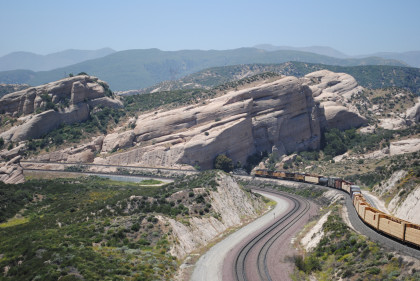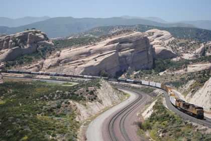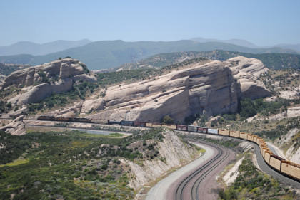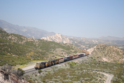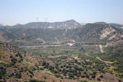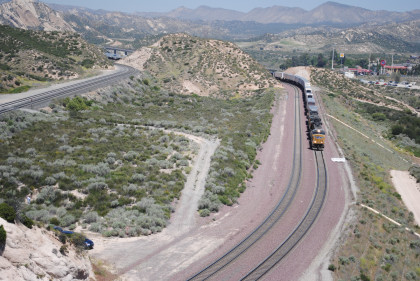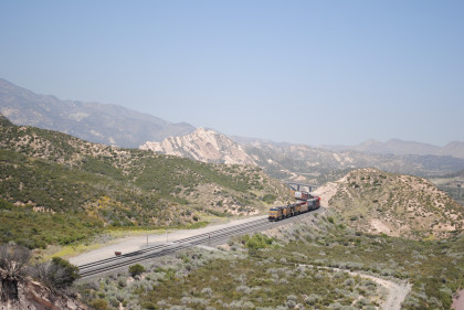 Union Pacific 5362 East came down the Palmdale Cutoff and headed around Sullivan's Curve. We now would wait for Santa Fe 3751 to pass by overlooking Sullivan's curve.