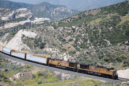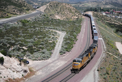 Union Pacific 4673 West came down the grade and went around Sullivan's Curve.