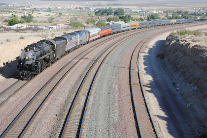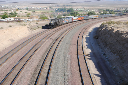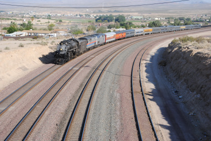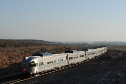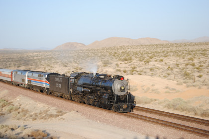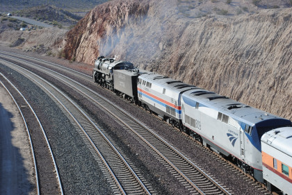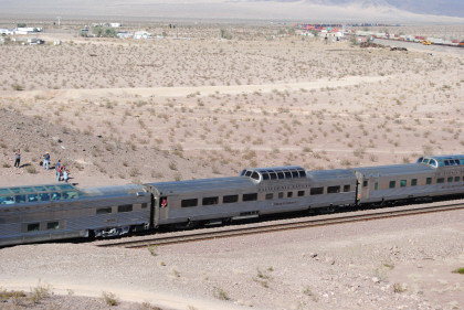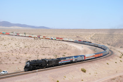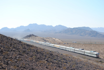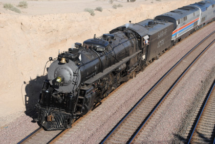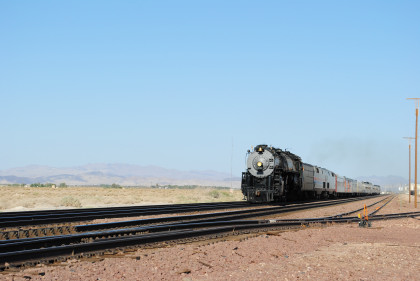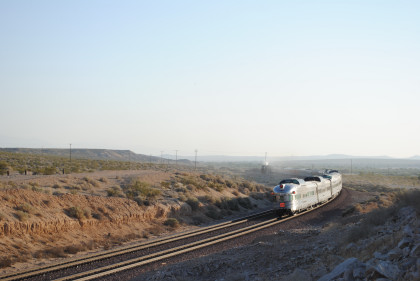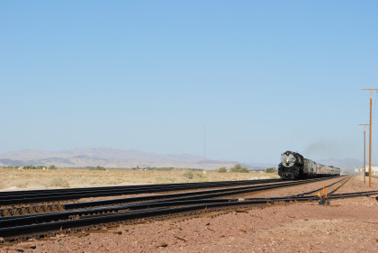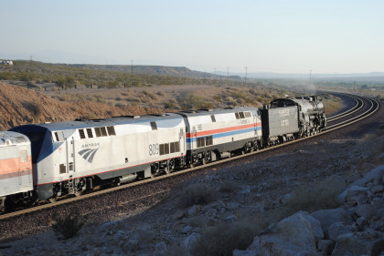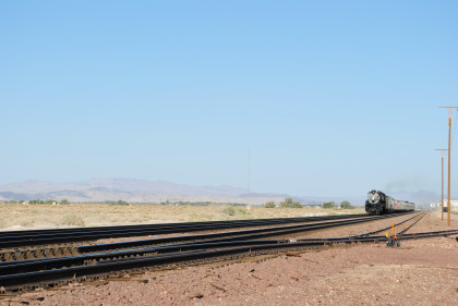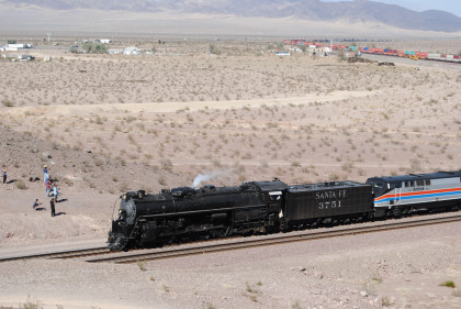 Santa Fe 3751 and train. That ended the chase so we headed to Fullerton, getting Randy there at 8:20 PM and we bought him a ticket out of the Metrolink ticket machine as one was able to buy Amtrak tickets from this machine, and he made Pacific Surfliner 591. The next morning I received a call from him to let me know that he was in Boston and thanked Bill and I for helping him get there. Bill drove me home and a very tired Chris called it a night. It had been a great chase of Santa Fe 3751 west across the Mojave Desert.