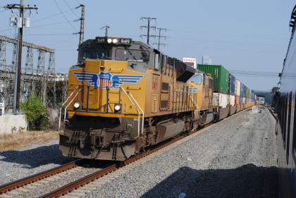 The train took the last curve for a while then I returned to my seat and relaxed. What a change from last year, when I rode this same trip with that cracked rib I had the day before during the eastbound Santa Fe 3751 chase. At CP Locust, we met Metrolink 364.