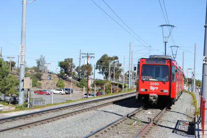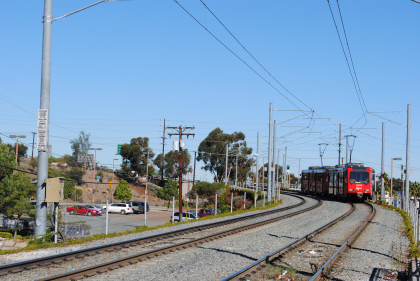 That now empty trolley departed so that the operator could switch ends before he returned to the Santa Fe Depot.