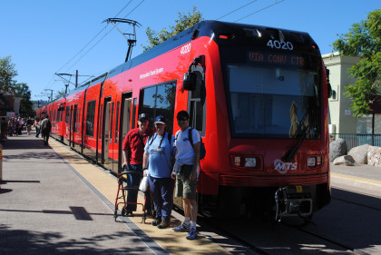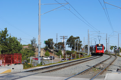 Finally, our Green Line Trolley for Santee arrived and the four of us boarded. This trolley stopped at Amele Avenue and Gillespie Field stations before we continued to Santee.