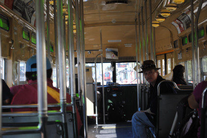 A few minutes later, we boarded this Green Line Trolley to return us to the Santa Fe Depot, where we waited for the Coaster to arrive.