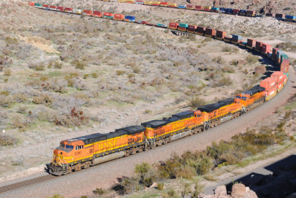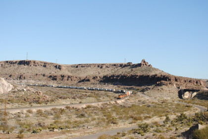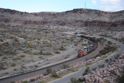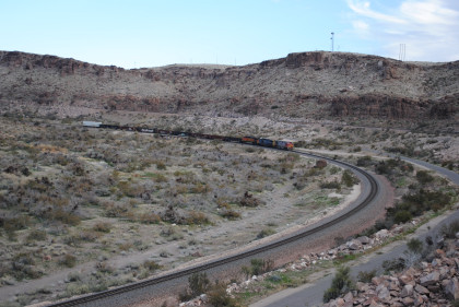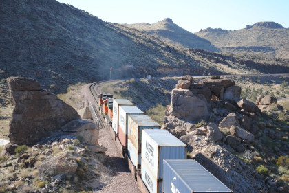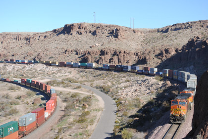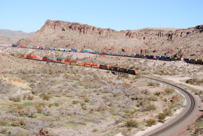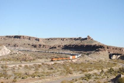Santa Fe 4-8-4 3759. Do you notice anything different from the morning's photographs? We filled the car with petrol and chased a westbound BNSF train out of Kingman as we started to head back towards Needles.