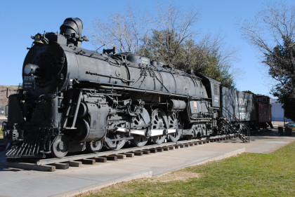 We arose at the Motel 6 at Needles and after packing, went to McDonald's for breakfast where I had hot cakes and sausage then we drove to Kingman and passed six westbound BNSF trains. Upon arrival in Kingman, we made our way to the steam engine and caboose on display.