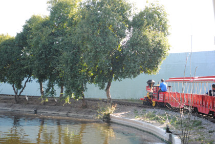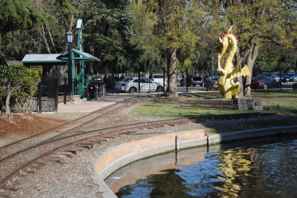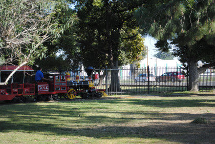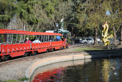 We finished our trip on the Willis B. Kyle Express Train at Storyland in Roeding Park. We thanked our operator then headed to the car. As we were leaving, Tony and Larry, who had stopped for petrol in Visalia, arrived and went to ride the train while we headed north to Stockton on CA Highway 99.