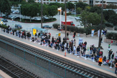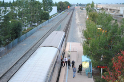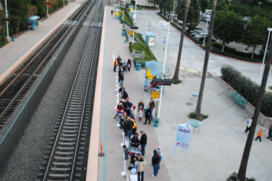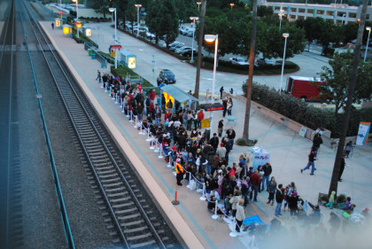 I drove to the Irvine Amtrak station, parked the van then walked out onto the pedestrian bridge where below, a large crowd was beginning to form.