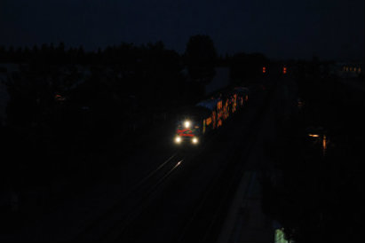 All you could see was the headlight, but this must be the Metrolink Holiday Toy Express.