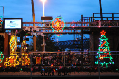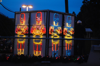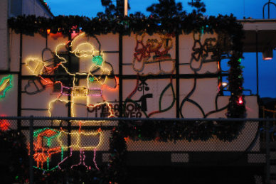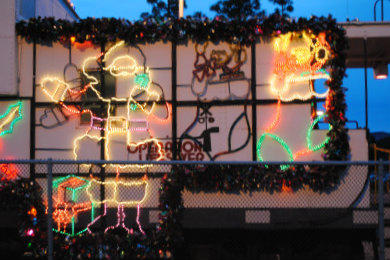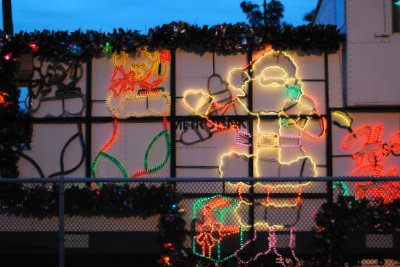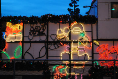 As I crossed the bridge and went downstairs, I stopped for a pair of pictures then fought the traffic to get home in time for my pay-per-view of the final Rolling Stones concert of the year. It had been another good evening of photography with the Metrolink Holiday Toy Express at Irvine.