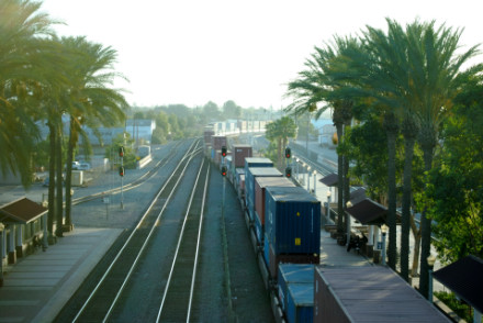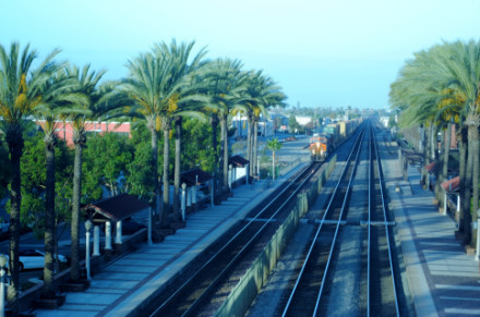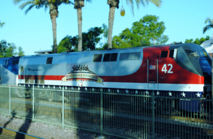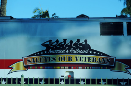 America's Railroad Salutes Our Veterans was the slogan on the side of this unique engine. I walked over to the west of Harbor Boulevard bridge for pictures as the train left Fullerton.