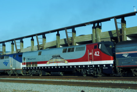 The Southwest Chief, train 3, arrived with Amtrak Veterans Unit P42DC 42 as the trailing unit. I walked down to the Track 3 platform to get some more pictures.