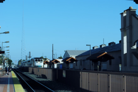 Amtrak Pacific Surfliner 564 arrived for a fast trip down to Irvine, which was as far as it was going this weekend. If you wanted to go further south, you needed to take a bus for Amtrak passengers. I would wait here for Metrolink 857 to the San Clemente Pier.