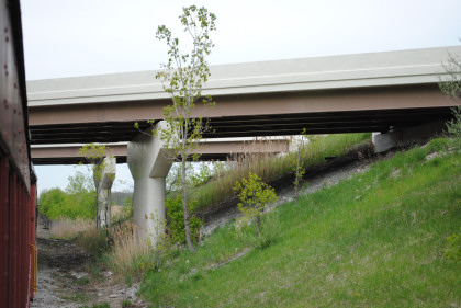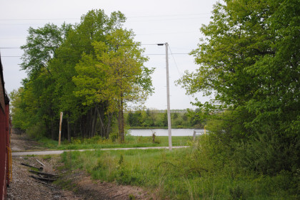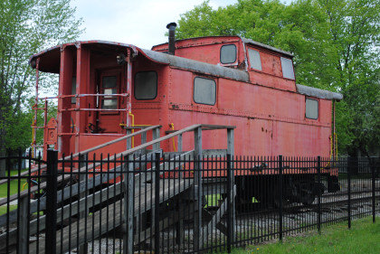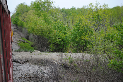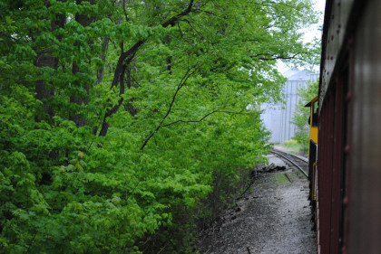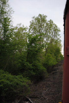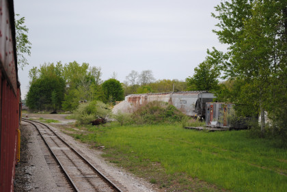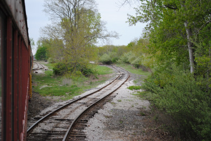 View of the stored engine and caboose. I hoped our train would come all the way up here but if it did not, I would at least photograph the route back to the Jefferson Depot.