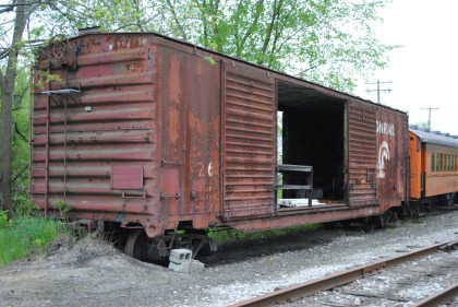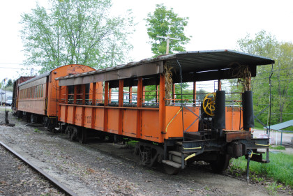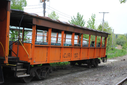 Ashtabula, Carson and Jefferson open car 100, ex. Knox and Kane Railroad 100 and built on a Pennsylvania Railroad caboose frame. It is privately owned.