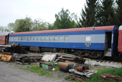 AC&Y Railroad Equipment company coach 721, ex. Illinois Central 52-seat coach 2678, exx. Illinois Central divided coach 3251, nee Illinois Central 3143 built by Pullman as a divided coach in 1919. This car is painted different on each side.