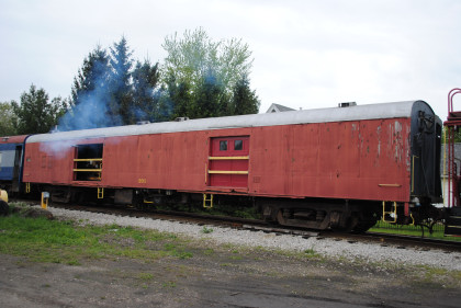 Ashtabula, Carson and Jefferson coach 7099, nee Long Island Railroad 99 built by American Car and Foundry in 1927. In 1974, it was sold to Steamtown Foundation, then in Bellows Falls, Vermont. Two years later, it was rebuilt into a diner and named "The Cephas Kent Inn" for use on the Vermont Bicentennial Steam Expedition and repainted into a purple & tan paint scheme. By 1983 it had been renamed the "Williams River Inn" and converted into a café car. This is where it acquired the SF lettering above the 7099 markings and was painted tuscan red with yellow pinstriping.