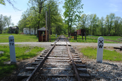 The speed record sign commemorating the event by New York Central jet-powered RDC 497 occurred along this stretch of New York Central Railroad tracks.