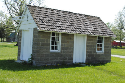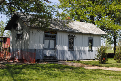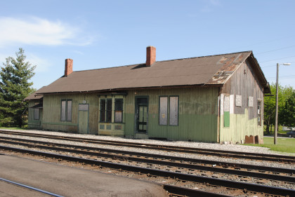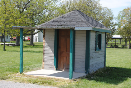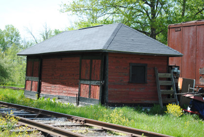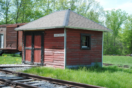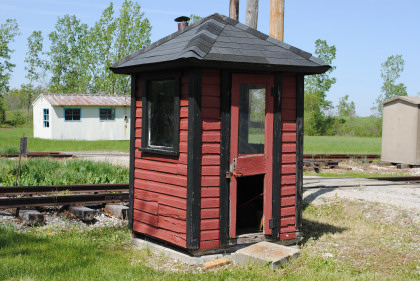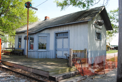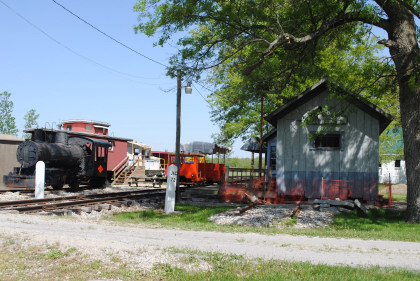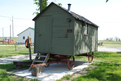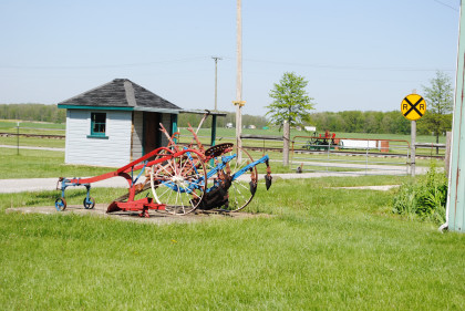 The Wabash station from Jewell, Ohio which used to be at the corner of CR-185 and Jewell Road. It was built in 1856 by the Toledo Wabash & Western Railroad and included a ticket master's office and had a freight room added in 1904. The depot housed tools and a telegraph office a baggage room and sold tickets to passengers. In 1967, the station was moved to the Village.