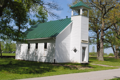 Sherry School School No. 7 was originally located about a mile south of the present Village on Krouse Road. It was moved and restored at the Village in 1971 by a grant from the McIntyre Family of Monroe, Michigan. Mrs. Idalou Blue donated the teacher's desk and a number of the school-room pieces, maps and books. The desks came from both Hamler, Ohio and Noble Township Schools. The clock hanging on the was was donated by John Harper of New Haven, Indiana. The central stove came from an old Township house in Florida, Ohio. In 2011, the building received a major overhaul by the Society volunteers.