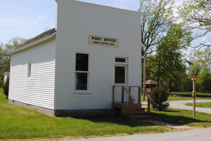 Post Office Mark Center, Ohio was built in 1875 and served as a fourth class post office run by Mrs. Marietta Kyle as its postmistress. The building was moved to the Village in November 1974. A meeting with the Defiance County Commissioners in January 1980 resulted in a major restoration effort. County funds paid for some materials. Volunteer workers came from Green Thumb or CETA as well as the local area. Maurice Smith, a retiree from the U.S. Postal Service, was scheduled as postmaster and helped make Commemorative Envelopes and First Day Covers available. Any letter could be mailed and received an AuGlaize postmark on that commemorative Sunday in 1980. U.S. Post Office retiree Herb Delventhal currently volunteers his time to keep the post office tidy. Ordis and Phyllis Hahn operated a toy shop in the back half of the building for several years.