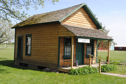 Dr. R.B. Cameron, M.D. Office dates prior to 1884. Dr. Robert Cameron began his practice there in 1915. The inside consists of a waiting room and an inner room where the doctor saw patients. There are many medical insturments used at that time on display in the office. The structure was moved to the Village in 1967. Outside the office is an herb garden. Doctors of the time used many native herbs to treat their patients. Johnny Appleseed was also known to plant herb gardens near his orchards.