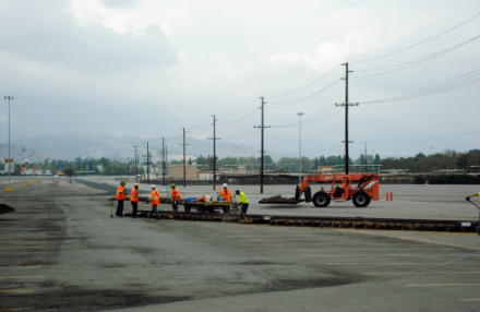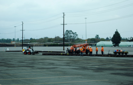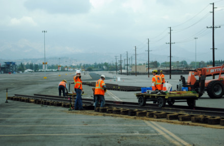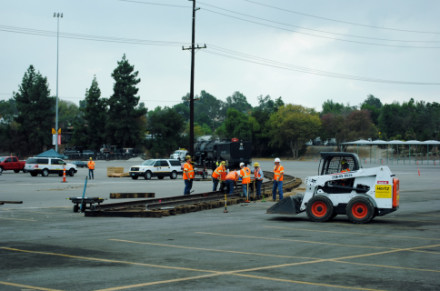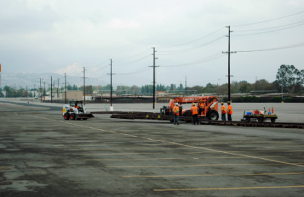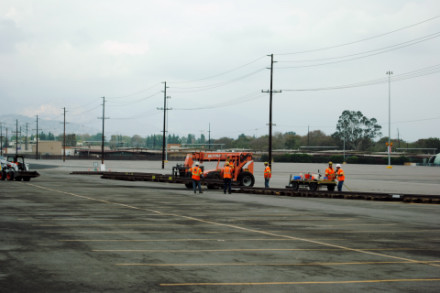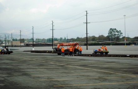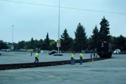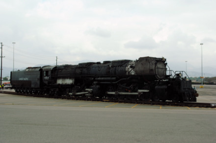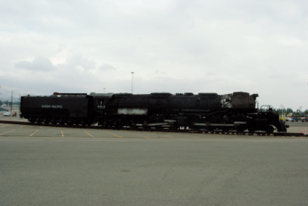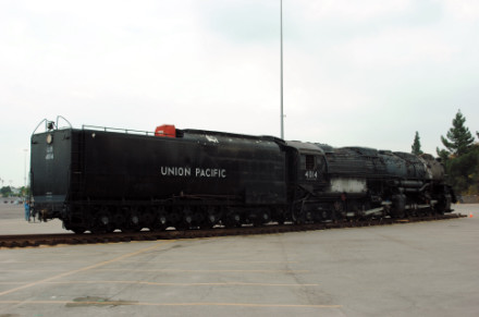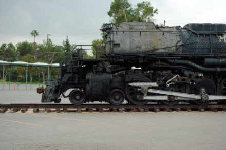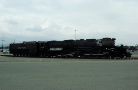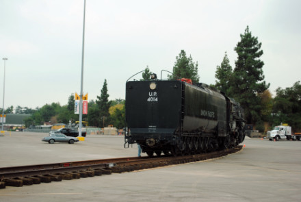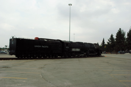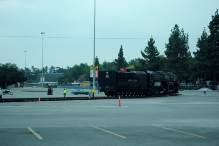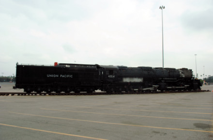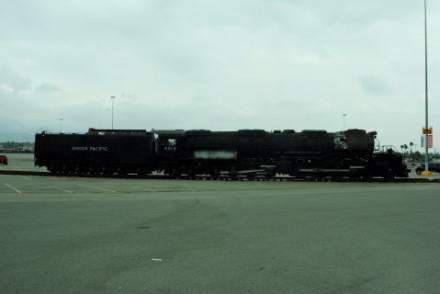 I saw a post on Trainorders.com about the start of the move of Union Pacific 4-8-8-4 4014 across the parking lot of the Los Angeles County Fairgrounds at Pomona and decided to get some pictures of this historic move. We learned last July that Union Pacific had chosen Union Pacific 4014 from those Big Boys on display around the country to restore to operating condition. This particular one belonged to the RailGiants Train Museum operated by the Southern California Chapter of the Railway and Locomotive Historical Society. In exchange, Union Pacific would donate a former Missouri Pacific SD40-2 and a caboose.