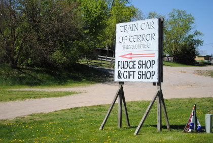 Chespeake and Ohio business car 4, part of the Stagecoach Stop Amusement Park which opened in 1968 and closed in 2008. The owners re-branded the car as "Train of Terror". We back-tracked across the highway to our next surprise.