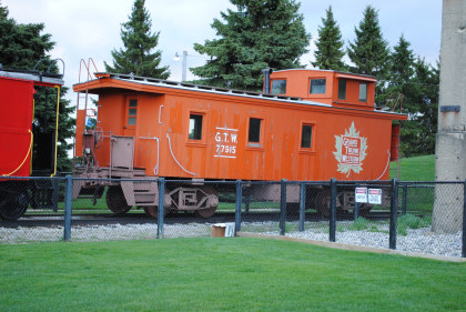 Grand Trunk Western wooden caboose 77915 built by the railroad in 1894 for the Grand Trunk of Canada and was then transferred to the Grand Trunk Western. It was rebuilt in 1925 and donated to the City of Grand Haven in 1980.