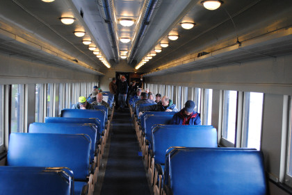 In 1987, the Central Michigan was created and after a few years of operations, abandoned most of the Grand Rapids to Muskegon route. To try to save part of this route, the Coopersville & Marne Railway Company was incorporated on July 13, 1989 and the line between Marne and Coopersville was sold on December 14, 1989. The Coopersville and Marne was seen as a more fitting moniker. Run by volunteers using several former commuter coaches on its train, with heritages of Delaware, Lackawanna and Western and Canadian National. The coaches are restroom-equipped for passenger convenience. The normal diesel power is former Grand Trunk Western Railway SW9 7014. The railroad also handles limited freight service, interchanging cars at the old St Mary's Cement siding, just west of the Ann Street Yard.