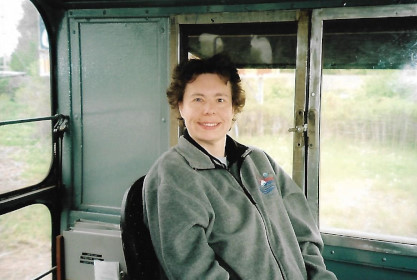 Before we departed, Bart Jennings asked if anyone would like a cab ride. Elizabeth was the first to say "yes" so she quickly detrained and hurried to the locomotive for this rare and special opportunity.