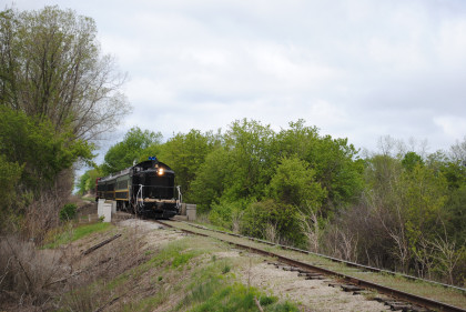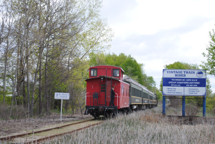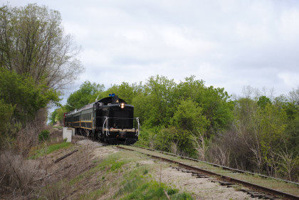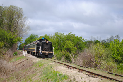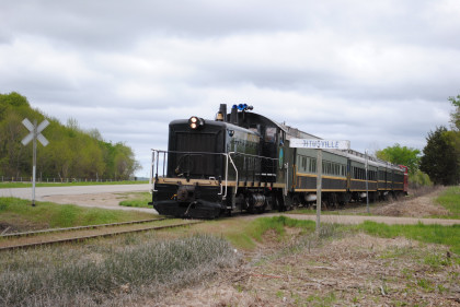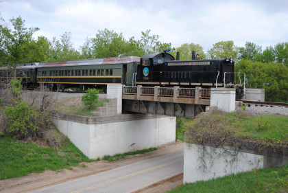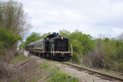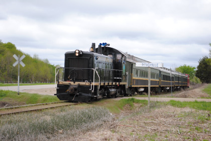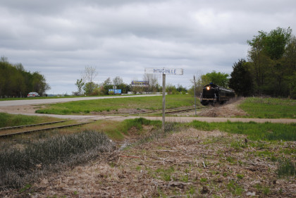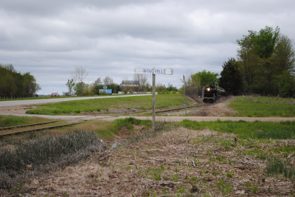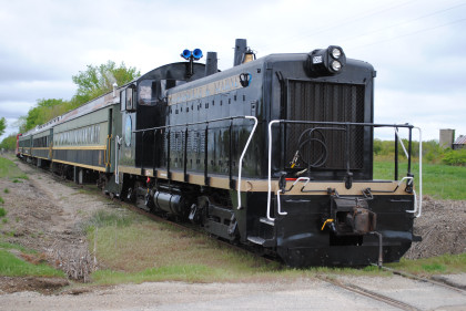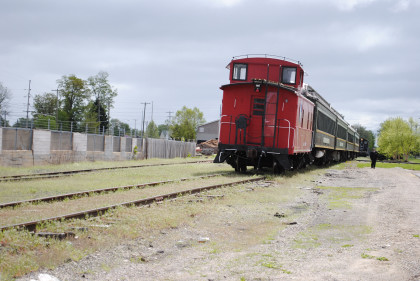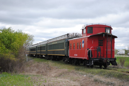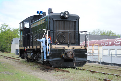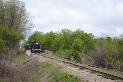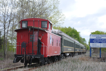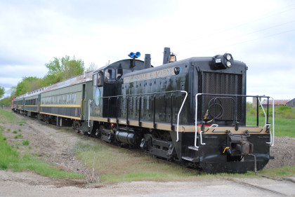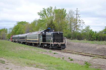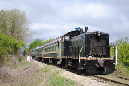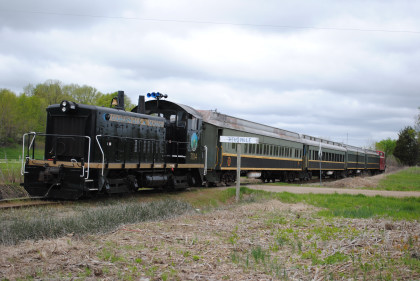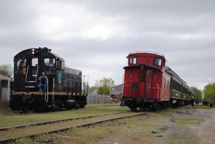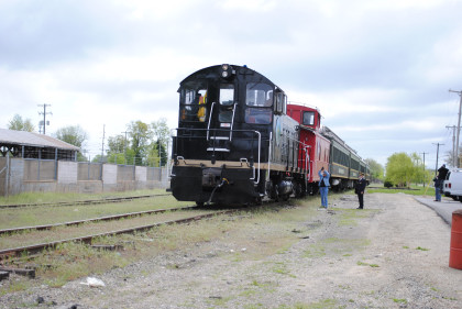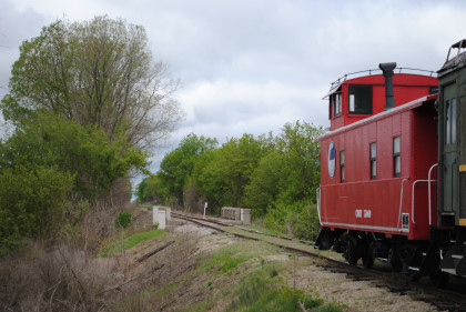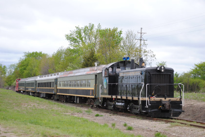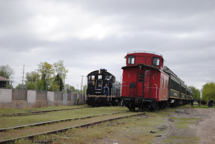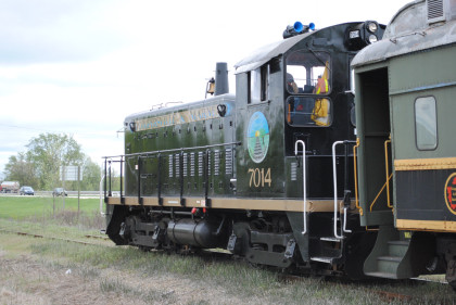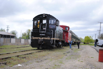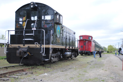 Elizabeth in the cab of former Grand Trunk Western 7014, taken by Don the engineer. At 10:00 AM our trip started as we departed Coopersville.